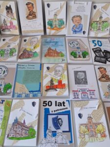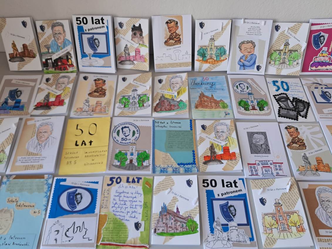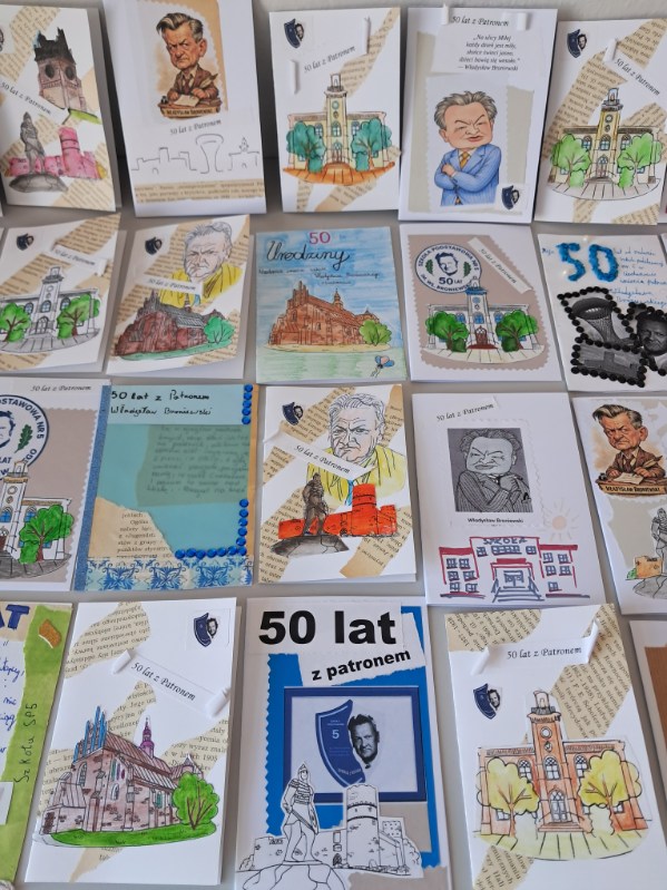 Z okazji 50-lecia nadania naszej szkole imienia Władysława Broniewskiego uczniowie na lekcjach plastyki przygotowali wyjątkowy projekt. Powstało 50 ręcznie wykonanych kartek, które wkrótce trafią do 50 szkół w Polsce noszących imię naszego Patrona – Władysława Broniewskiego. Dzięki zaangażowaniu uczniów powstały piękne i pomysłowe prace plastyczne, które stały się symbolem pamięci o patronie oraz dumy z historii naszej szkoły.