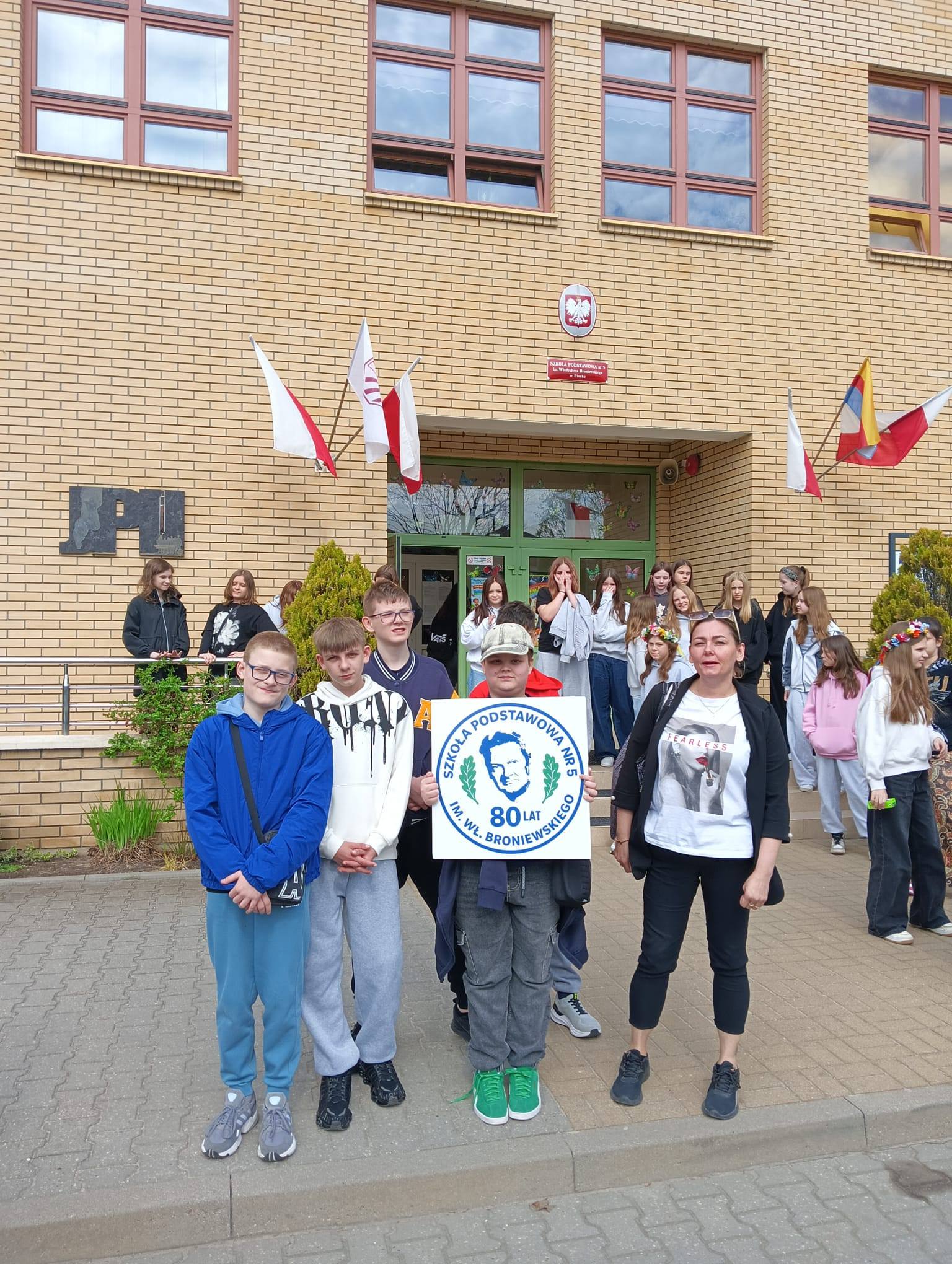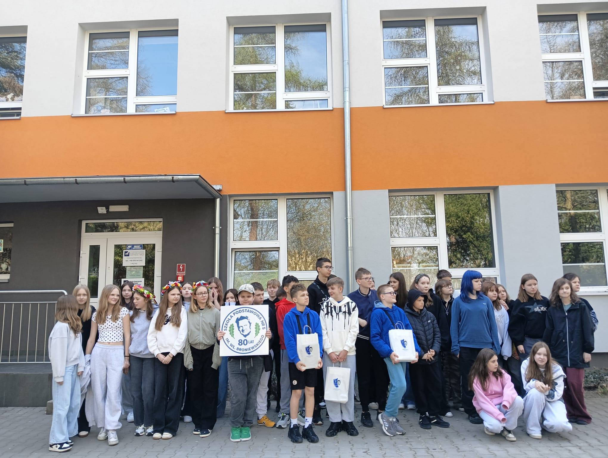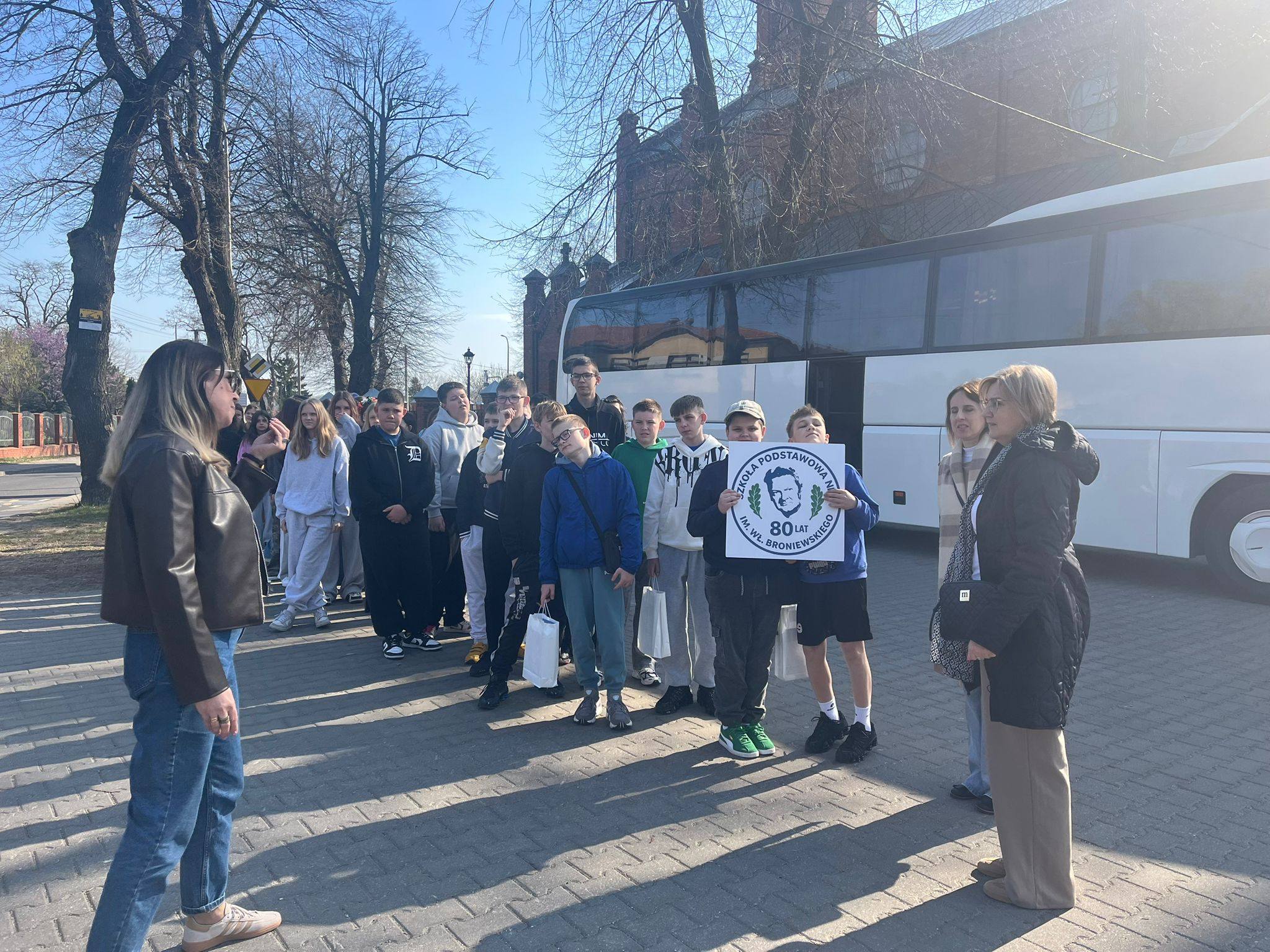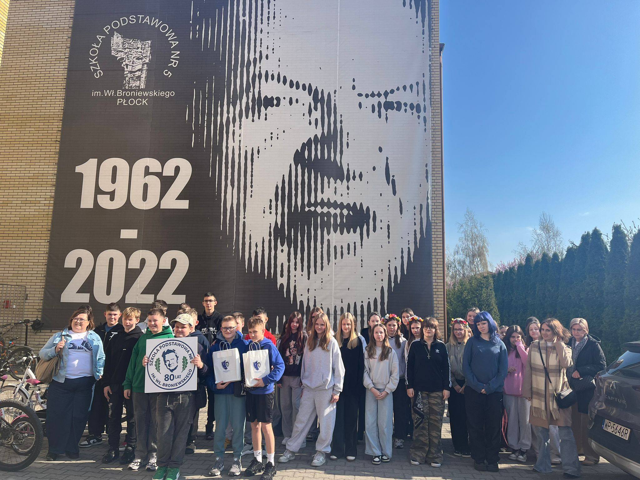 Dnia 16 kwietnia 2026r. klasy 6a i 6d pod opieką pań : Anety Pac, Anny Otłowskiej, Katarzyny Daniszewskiej i Martyny Kruszyńskiej udały się na wycieczkę do Płocka śladami patrona szkoły, Władysława Broniewskiego. Na początek odwiedziliśmy SP nr 5 im.Wł. Broniewskiego w Płocku, żeby zobaczyć inną szkołę podstawową, z którą łączy nas postać patrona. Wizyta przebiegła w bardzo miłej atmosferze, a na pożegnanie zostaliśmy obdarowani miłym podarunkiem – piłką z autografami zawodników Wisły Płock. Następnie odbyliśmy spacer po mieście do miejsc związanych z poetą. Panie przewodniczki bardzo ciekawie opowiadały o życiu Władysława Broniewskiego, jego rodzinie i młodzieńczych latach spędzonych w Płocku. Ostatnim etapem wyjazdu była wystawa poświęcona Broniewskiemu w Muzeum Mazowieckim. Po lekcji w plenerze przyszedł czas na zabawę – świetnie spędziliśmy go na grze w laserowy paintball. Wycieczka z pewnością przybliżyła wszystkim sylwetkę patrona naszej szkoły, który okazał się być człowiekiem o niezwykle ciekawym życiorysie.