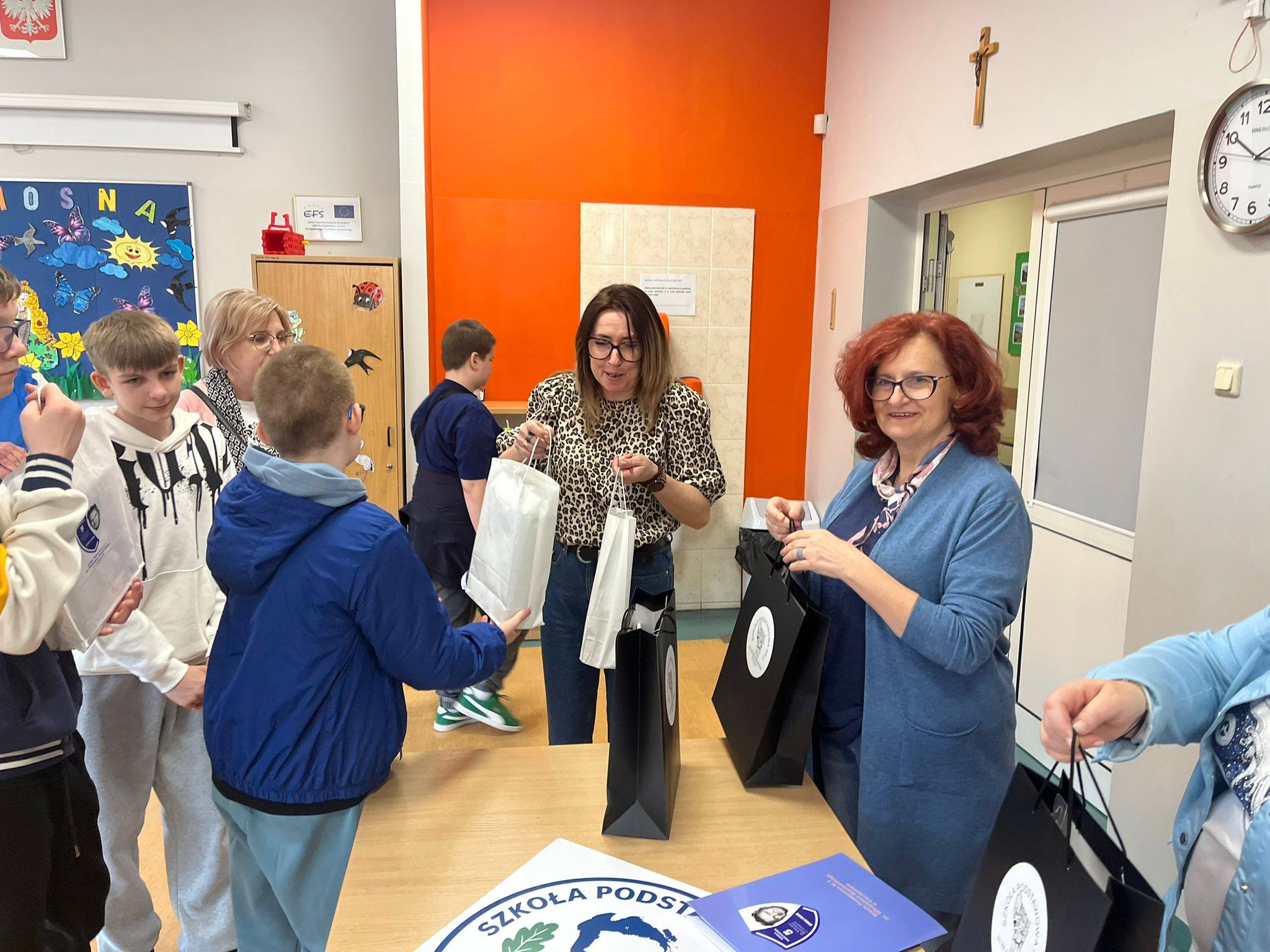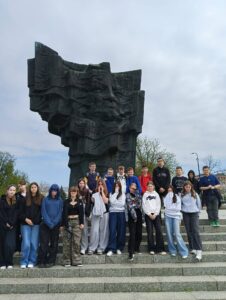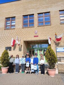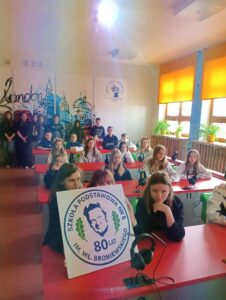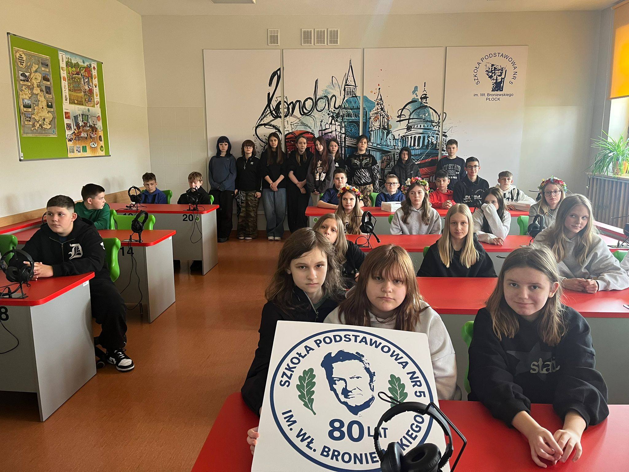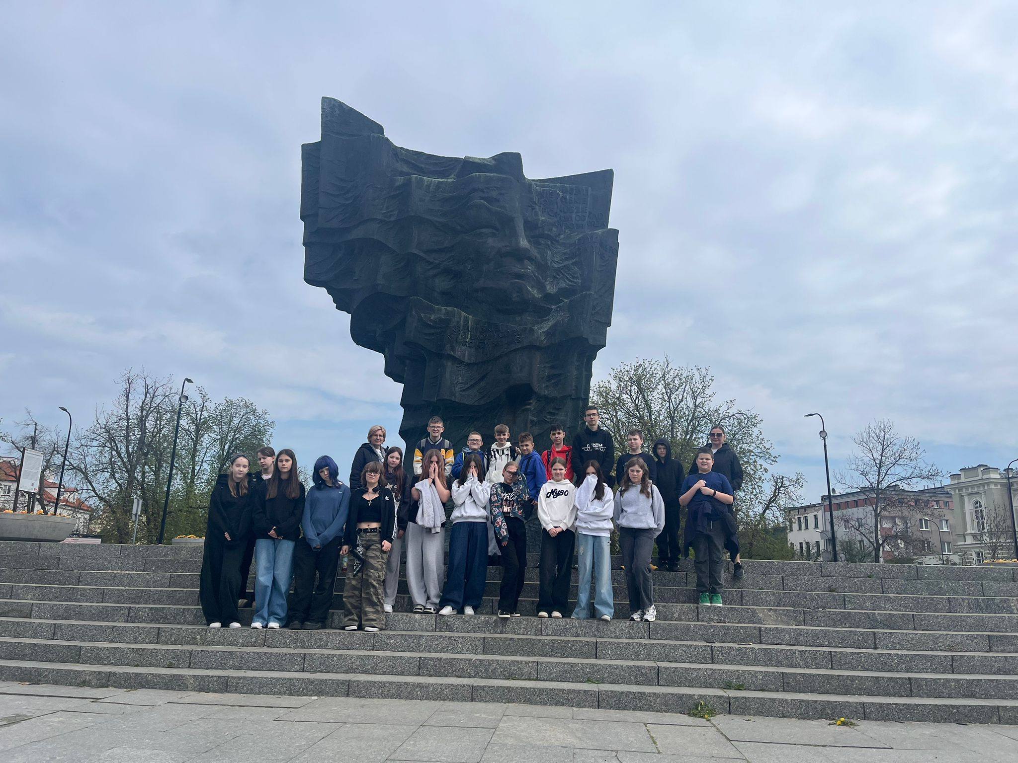 Dnia 16 kwietnia 2026r. klasy 6a i 6d pod opieką pań : Anety Pac, Anny Otłowskiej, Katarzyny Daniszewskiej i Martyny Kruszyńskiej udały się na wycieczkę do Płocka śladami patrona szkoły, Władysława Broniewskiego. Na początek odwiedziliśmy SP nr 5 im.Wł. Broniewskiego w Płocku, żeby zobaczyć inną szkołę podstawową, z którą łączy nas postać patrona. Wizyta przebiegła w bardzo miłej atmosferze, a na pożegnanie zostaliśmy obdarowani miłym podarunkiem – piłką z autografami zawodników Wisły Płock. Następnie odbyliśmy spacer po mieście do miejsc związanych z poetą. Panie przewodniczki bardzo ciekawie opowiadały o życiu Władysława Broniewskiego, jego rodzinie i młodzieńczych latach spędzonych w Płocku. Ostatnim etapem wyjazdu była wystawa poświęcona Broniewskiemu w Muzeum Mazowieckim. Po lekcji w plenerze przyszedł czas na zabawę – świetnie spędziliśmy go na grze w laserowy paintball. Wycieczka z pewnością przybliżyła wszystkim sylwetkę patrona naszej szkoły, który okazał się być człowiekiem o niezwykle ciekawym życiorysie.
